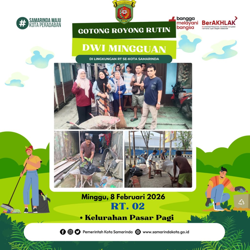 Gotong Royong di Wilayah RT. 02 Jl. Gajah Mada Gg. 2 Samarinda. Kegiatan ini dipimpin langsung oleh Ketua RT 2 (Ibu Siti Fatimah) diikuti warga sekitar dan turut hadir Kasi Ekobang & Lh Kelurahan Pasar Pagi. Kegiatan ini meliputi membersihkan lingkungan wila...