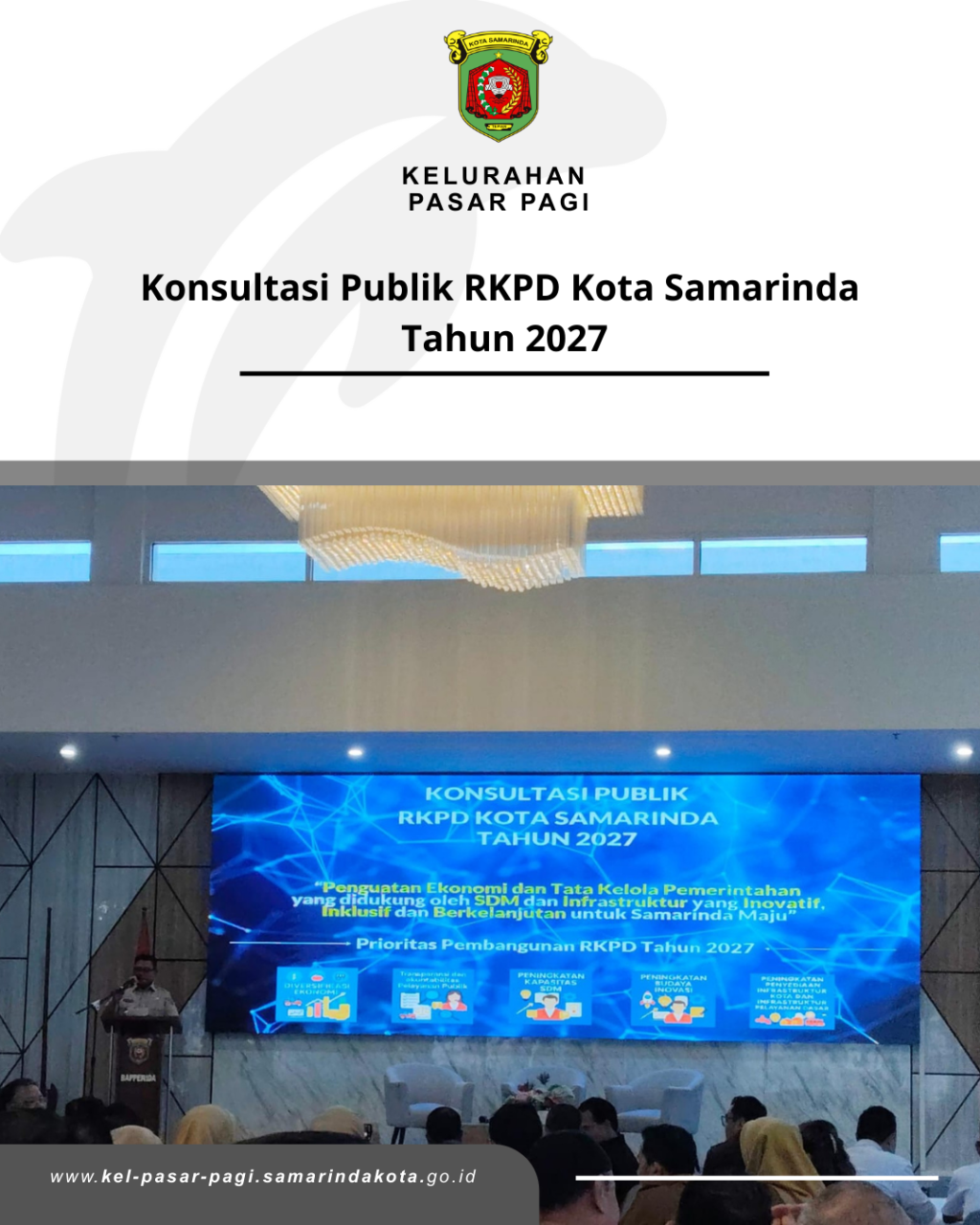 Sekretaris Lurah mewakili Lurah menghadiri Pembukaan Konsultasi Publik RKPD Kota Samarinda Tahun 2027 di Gedung Arutala, Bapperida Kota Samarinda Jln. Dahlia No.81.