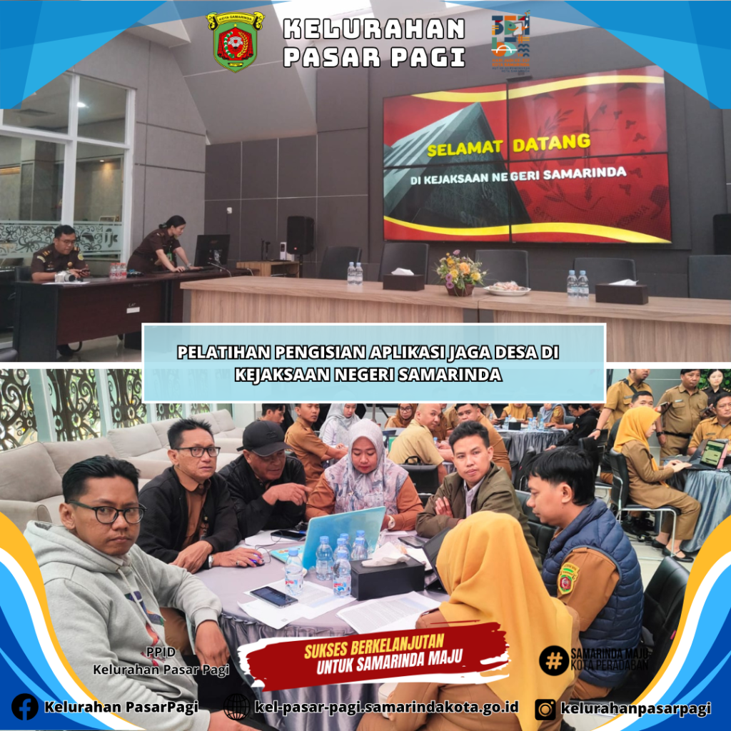 Staff Bidang Pemerintahan & Trantib Kelurahan Pasar Pagi mengikuti pelatihan pengisian aplikasi jaga desa di Kejaksaan Negeri Samarinda, Jl. M. Yamin - Samarinda.