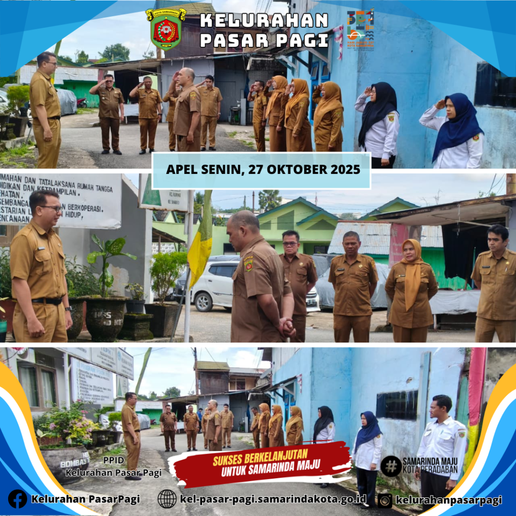 Sekretaris Lurah menjadi Pembina dalam upacara diikuti Pejabat Struktural, Pegawai ASN, PPPK & PTT Kelurahan Pasar Pagi. Pembina Upacara memberi amanat untuk dapat kembali displin dalam bekerja. Beliau juga berpesan untuk dapat memeriksa e-kinerja masing-masi...