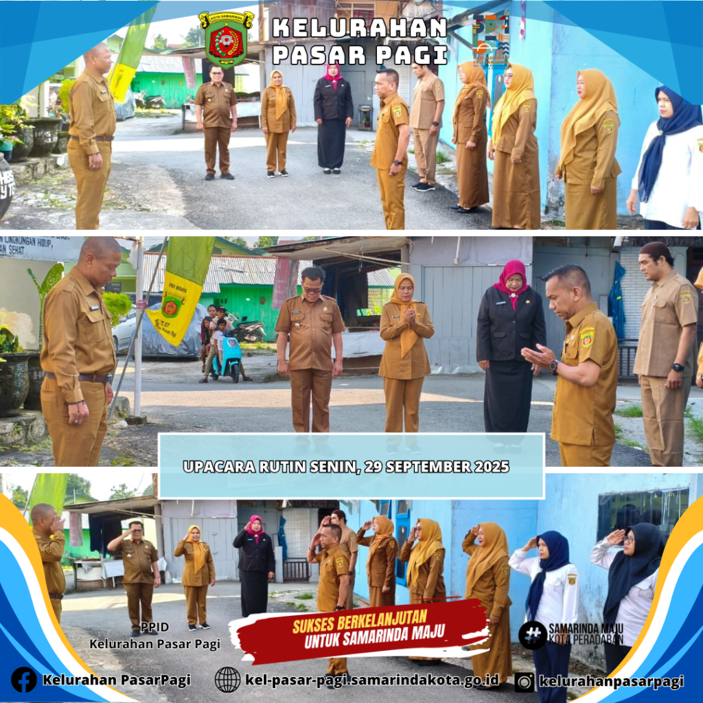Kasi Pemerintahan & Trantib Kel. Pasar Pagi (Miftahul Arifin, SE.) menjadi Pembina pada Upacara Rutin Senin diikuti Lurah, Pejabat Struktural, Pegawai ASN, PPPK & PTT di Kelurahan Pasar Pagi. Dalam kesempatan ini Pembina memberikan motivasi untuk dapat...