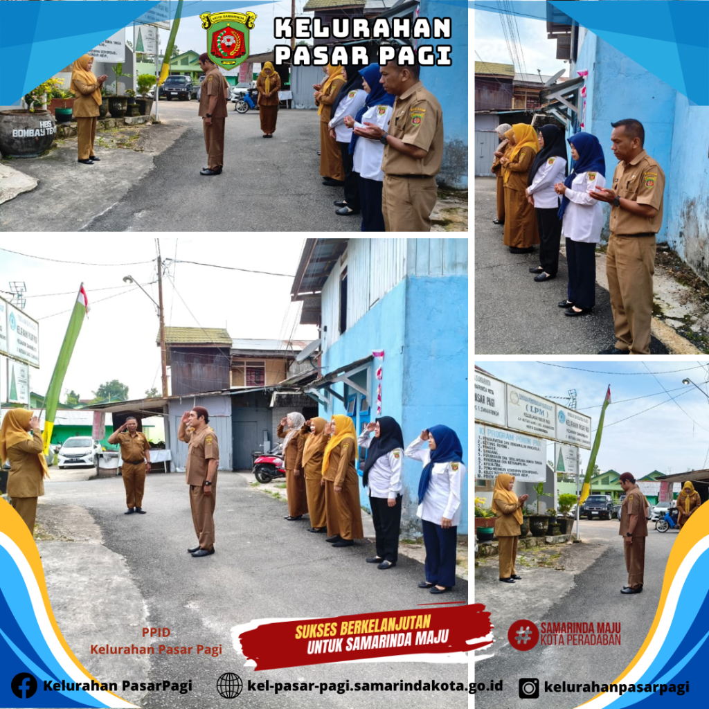 Upacara Rutin Senin, Kasi Kesra Kelurahan Pasar Pagi (Novi Nuraini, SE.) menjadi pembina upacara diikuti Pejabat Struktural, Pegawai ASN, PPPK & PTT yang dilaksanakan di Halaman Kelurahan Pasar Pagi.
