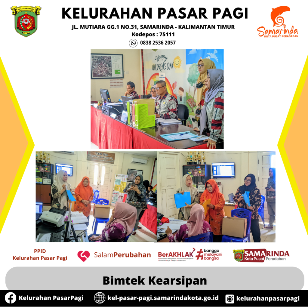 Bimbingan Teknis Kearsipan kepada Pengelola Kearsipan Kelurahan Pasar Pagi dari Dinas Perpustakaan Dan Kearsipan Samarinda di Kelurahan Pasar Pagi. Bimbingan teknis kearsipan bagi pengelola kearsipan kelurahan adala...