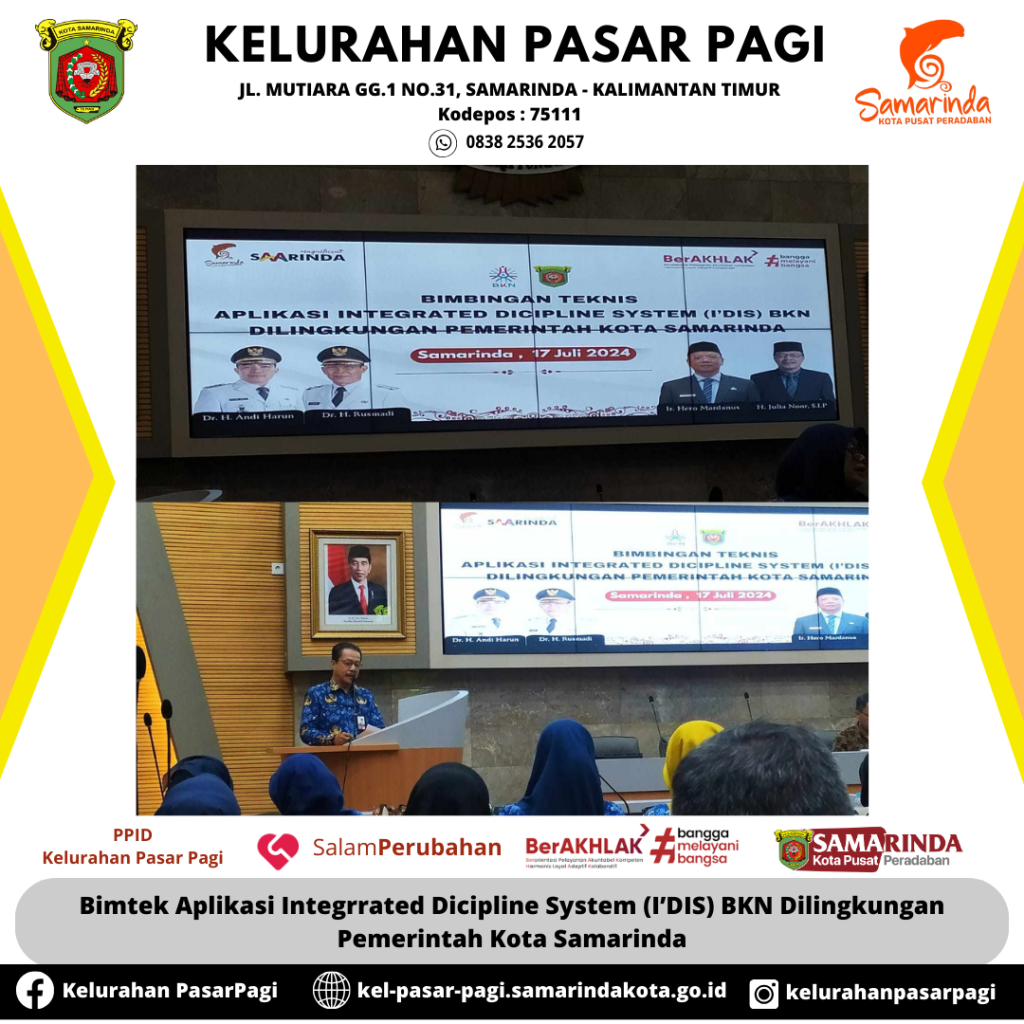 Kasi Pemerintahan menghadiri Bimtek Aplikasi Integrrated Dicipline System (I’DIS) BKN Dilingkungan Pemerintah Kota Samarinda di Ruang Mangkupalas, Balaikota Samarinda.