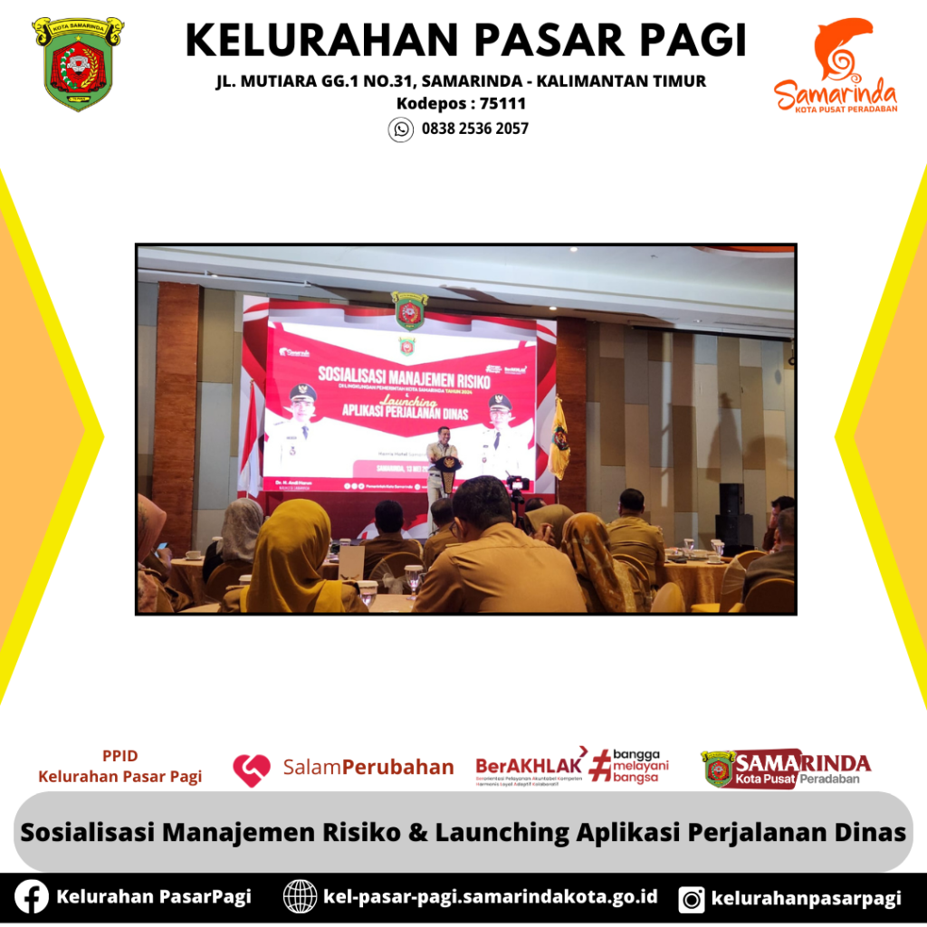 Sosialisasi Manajemen Resiko dan Launching Aplikasi Perjalanan Dinas dihadiri Sekretaris Lurah (Rusnawaty, S.Hut) di Hotel Harris Samarinda.